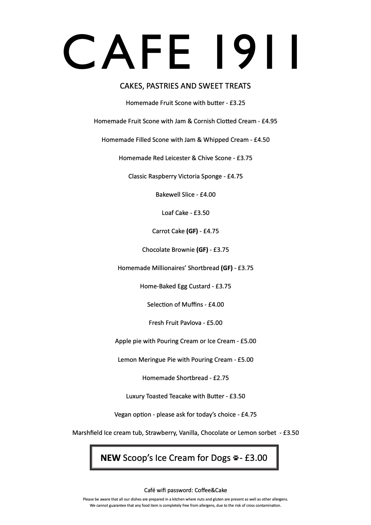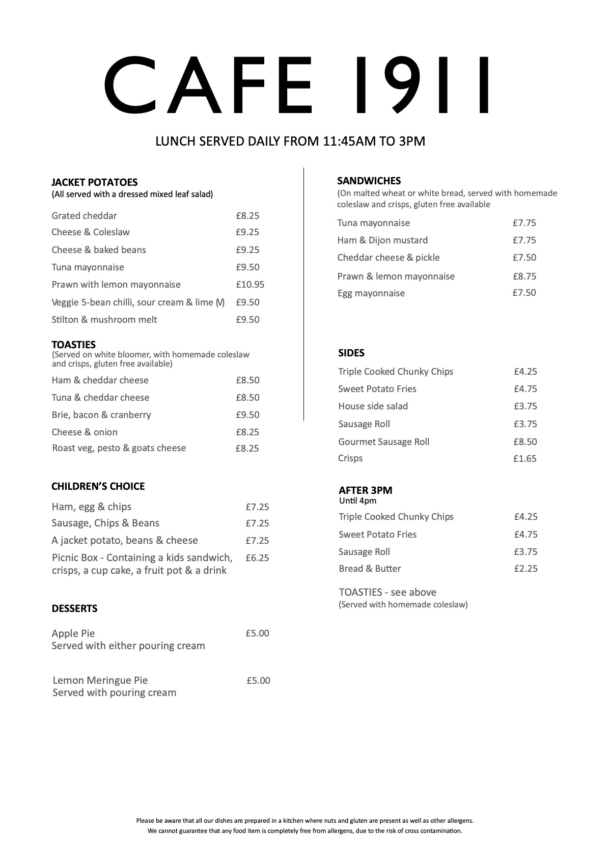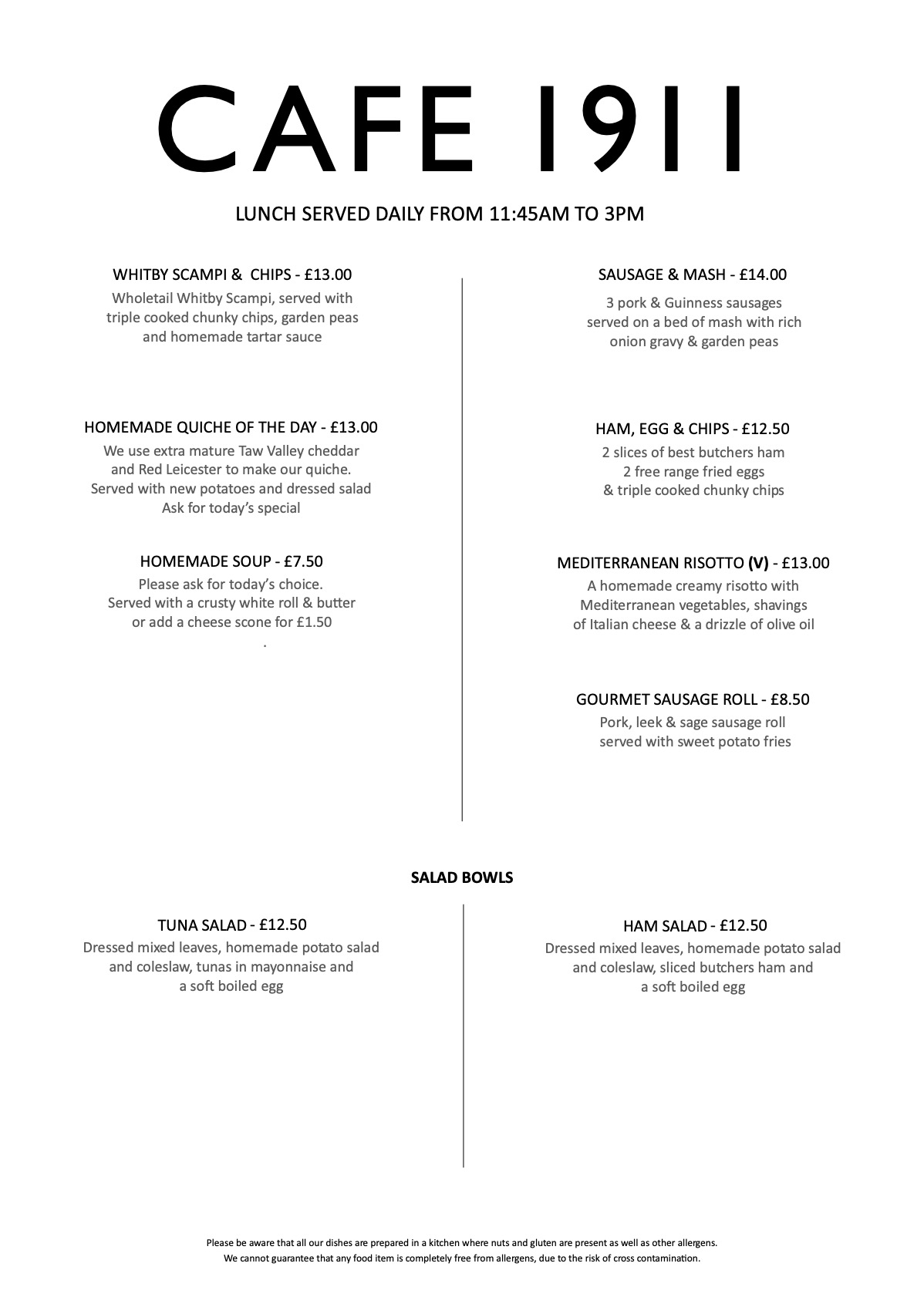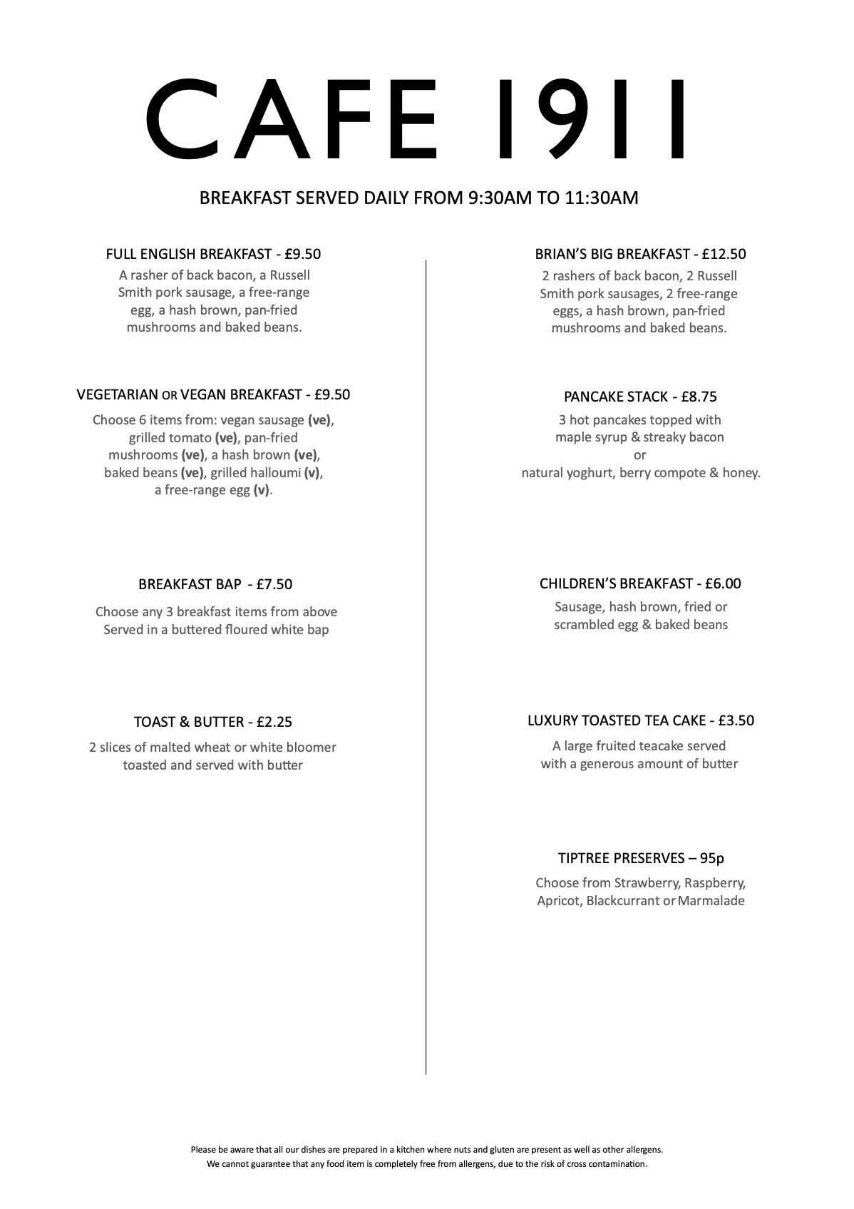 Sunday: 9:30-15:30 *Menu is subject to change due to availability. Please ask in store for more details.