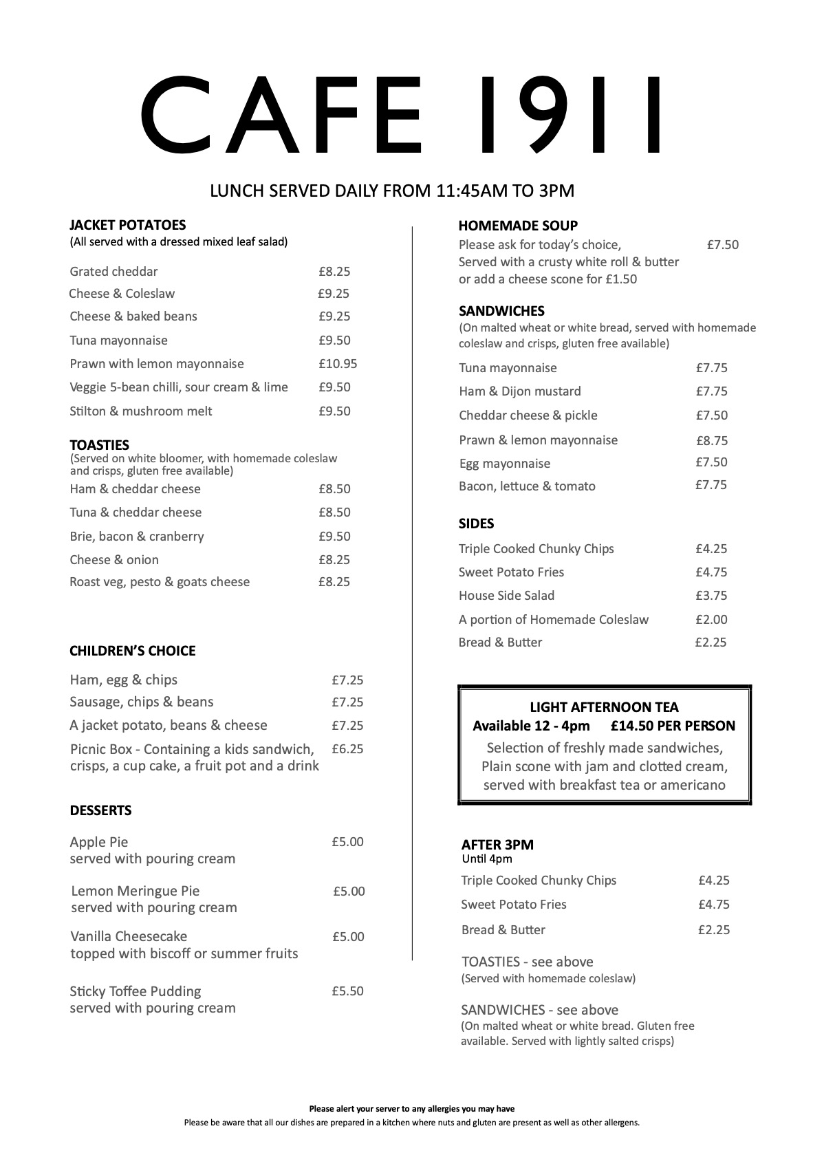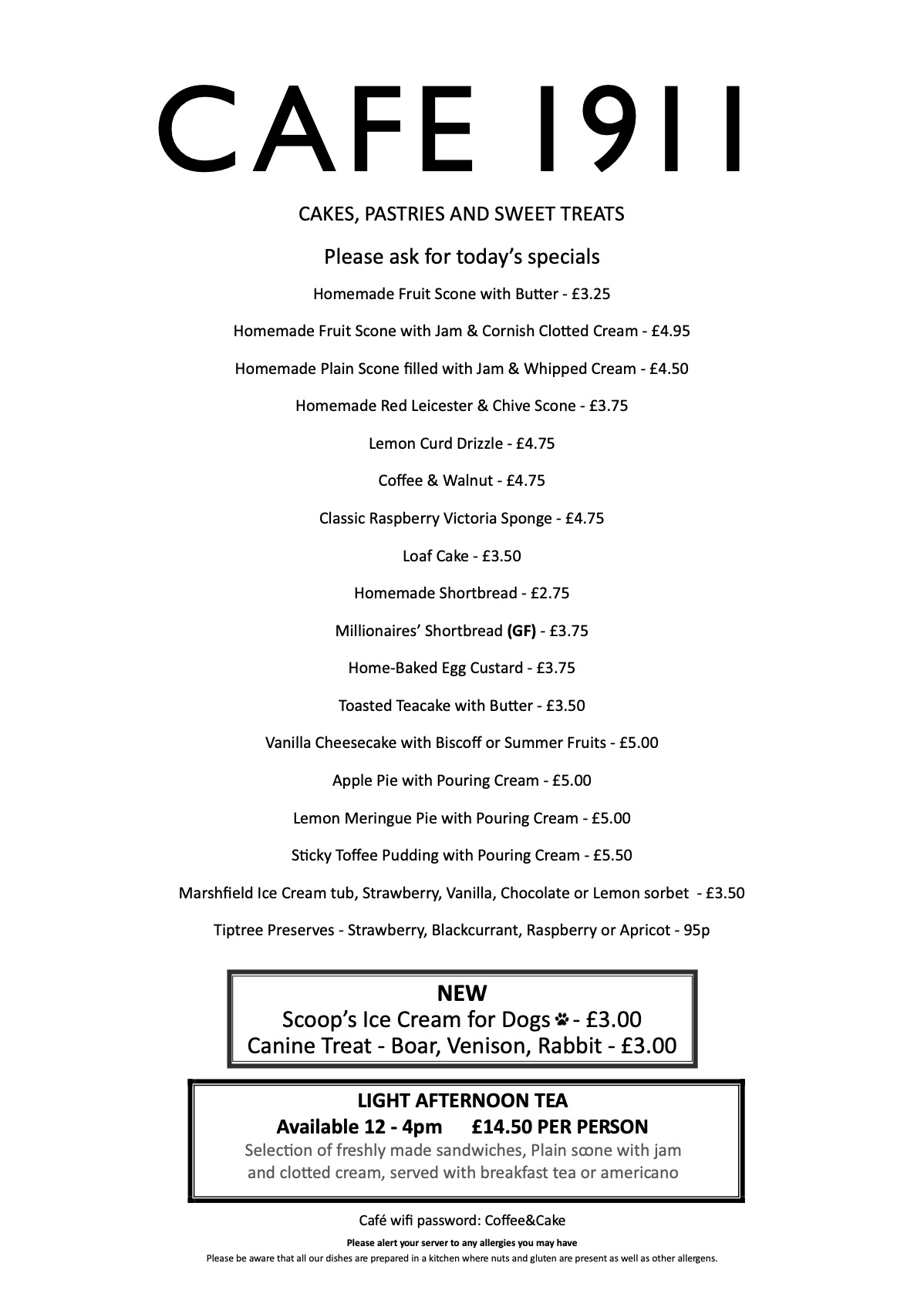 Sunday: 9:30-15:30 *Menu is subject to change due to availability. Please ask in store for more details.